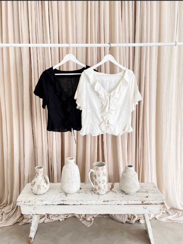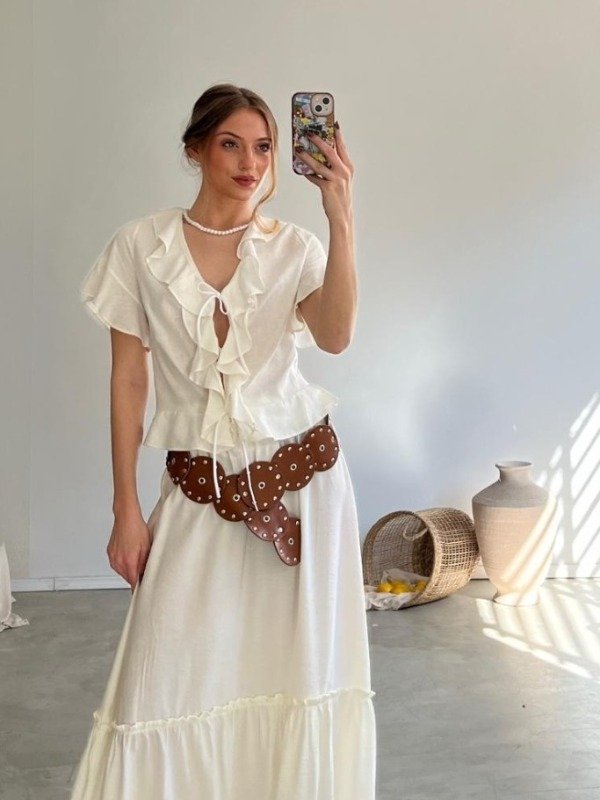 Blusa con volados en delantero y tiras en delantero.