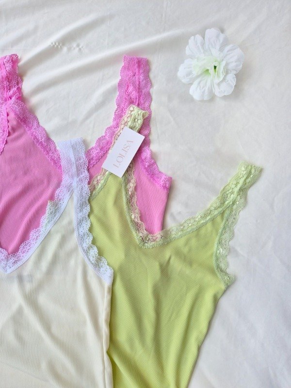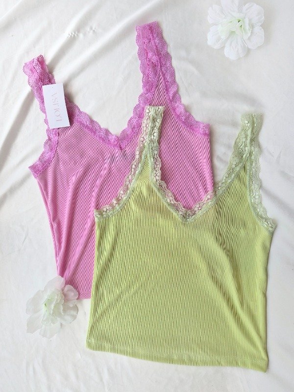 Musculosa de morley con puntilla en escote y breteles.