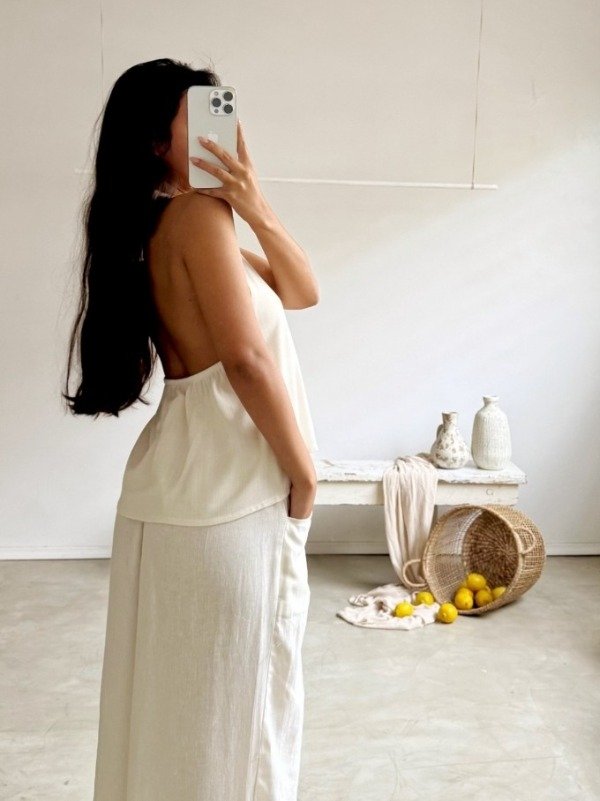 Musculosa con tiras ajustables para regular en el cuello.