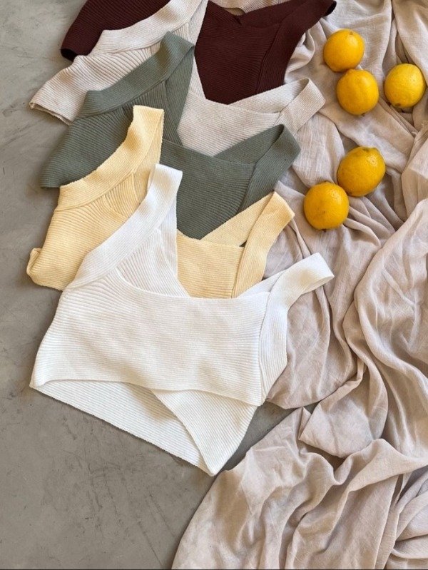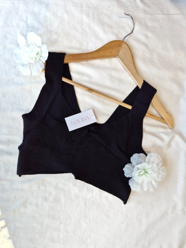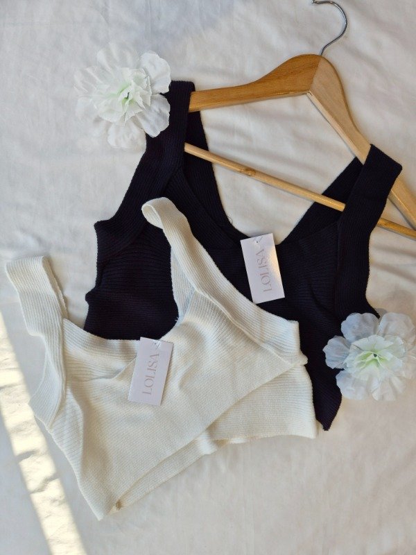 Musculosa de hilo elastizado con bretel ancho cruzado al frente.