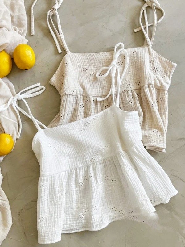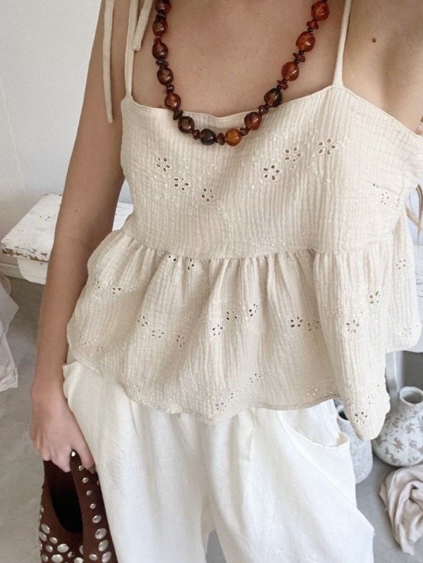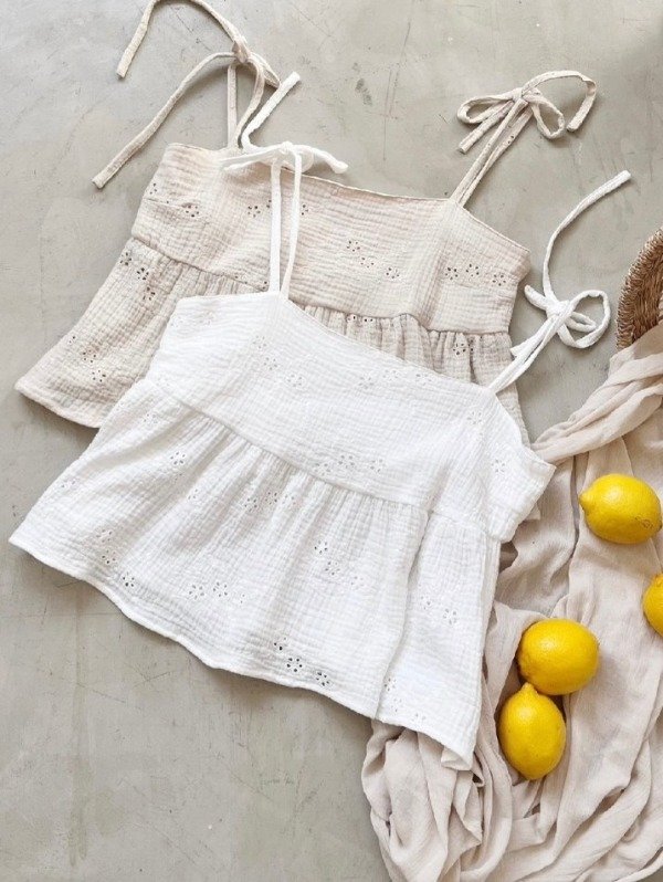 Musculosa tipo top con escote recto, tiras para regular y forro interior combinado.