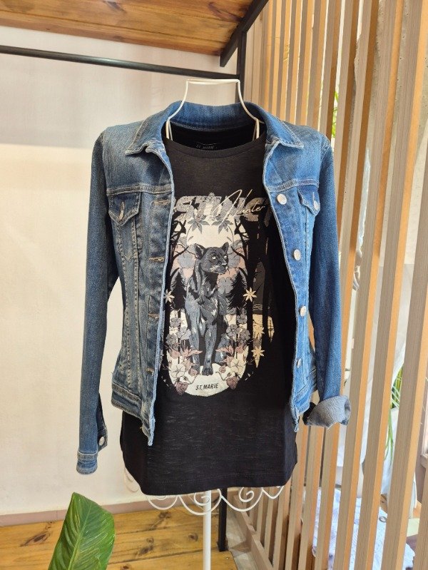Campera de jeans corte clasica elasitizada , entallada al cuerpo. Color azul localizado.