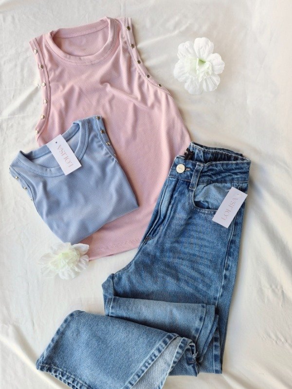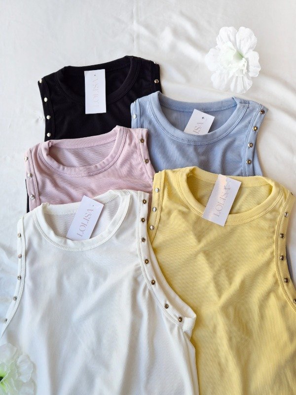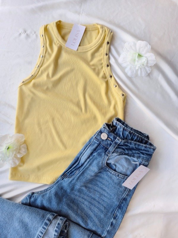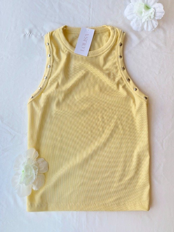 Top de morley escote redondo alto con detalle de tachas .